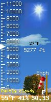 NWS forecast: Partly sunny. High near 54, with temperatures falling to around 52 in the afternoon. Northeast wind around 13 mph, with gusts as high as 21 mph. WXSIM forecast: Partly to mostly cloudy. High 56°. UV index up to 5. Wind east-northeast around 8 mph, gusting to 17 mph.