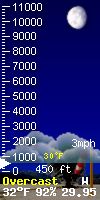 NWS forecast: A slight chance of thunderstorms and a slight chance of rain before midnight. Mostly cloudy, with a low around 31. Northwest wind 13 to 16 mph, with gusts as high as 26 mph. Chance of precipitation is 20%. New rainfall amounts between a tenth and quarter of an inch possible. WXSIM forecast: Mostly cloudy to cloudy. A chance of freezing rain. Breezy. Low 29°. Wind chill as low as 20. Wind north-northwest around 13 mph, gusting to 19 mph. Chance of precipitation 30 percent. Precipitation (liquid equivalent) mostly less than a tenth of an inch. No ice (on ground) accumulation expected. Little if any freezing rain accumulation.