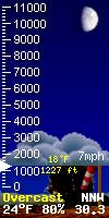 | 1 Rain season: Jan 1st to Dec 31st. 2 Snow Melted as Precipitation in Heated Raingauge. 4 Chandler Burning Index (CBI) Updates Continuously. 5 Estimated amount of water needed to replace the water used by plants and evaporation from the past week. (Negative numbers mean amount of water needed, positive numbers mean excess water is present). 6 Air Quality Index is provided by Douglas County Health Department in Omaha, NE. AQI Data for Lincoln, NE is currently unavailable as an RSS feed.. 9 Solar Index represents either an absolute scale of solar energy (W/m²) using the station’s recorded maximum or a percentage of computed theoretical solar maximum using the station’s location and time of day. These indices differ most when the sun is low on the horizon. The current scale is shown, and will toggle if it or the icon is clicked. 10 Historical average only to day 30 of just the month of November for this station since 2007. 11 Historical average rain this season to day 30 of November for this station since 2007. |
