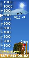 NWS forecast: A chance of snow before 7pm. Partly cloudy. Low around 8, with temperatures rising to around 10 overnight. North northwest wind 21 to 31 mph, with gusts as high as 55 mph. Chance of precipitation is 30%. New snow accumulation of less than one inch possible. WXSIM forecast: Mostly cloudy in the evening, becoming mostly clear after midnight. Windy and cold. Low 23°. Wind chill ranging from 11 to 18. Wind north-northwest around 24 mph, gusting to 34 mph, in the evening, becoming 21 mph, gusting to 31 mph, after midnight.