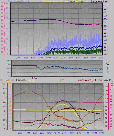 Maximum windspeed = 17 mph from 202°(SSW) on day 08 at time 11:46