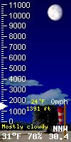 NWS forecast: A slight chance of snow between 8pm and midnight, then a chance of snow showers between midnight and 5am, then a slight chance of freezing drizzle. Mostly cloudy. Low around 22, with temperatures rising to around 25 overnight. North northwest wind around 2 mph. Chance of precipitation is 20%. WXSIM forecast: Partly to mostly cloudy in the evening, becoming partly cloudy after midnight. Low 20°. Wind north-northeast around 2 mph in the evening, becoming north-northwest after midnight.