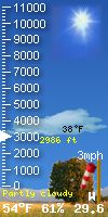 NWS forecast: Partly cloudy. Low around 35, with temperatures rising to around 37 overnight. North northwest wind 9 to 22 mph, with gusts as high as 38 mph. WXSIM forecast: Fair to partly cloudy in the evening, becoming partly cloudy after midnight. Breezy. Low 42°. Wind northwest around 14 mph, gusting to 25 mph.