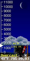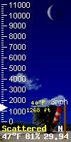 NWS forecast: A chance of rain showers before 11pm. Mostly cloudy. Low around 29, with temperatures rising to around 36 overnight. Northwest wind 14 to 17 mph, with gusts as high as 29 mph. Chance of precipitation is 30%. WXSIM forecast: Partly cloudy in the morning, becoming sunny in the afternoon. Breezy. High 35°. Wind chill ranging from 16 to 26. Wind north-northwest around 17 mph, gusting to 24 mph, in the morning, becoming 13 mph, gusting to 24 mph, in the afternoon.